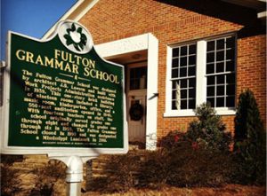 The Fulton Grammar School was designed by architect J.B. Lawson and built with Work Projects Administration assistance in 1939. This one-story brick building of nineteen rooms included a library, music room, kindergarten, office, and a 550-seat auditorium opened in 1940. With fourteen teachers on staff, the school originally served grades one through eight and changed to grades one through six in 1959. The Fulton Grammar School closed in 1999 and was designated a Mississippi Landmark in 2001. The theater is now used for community plays and events.